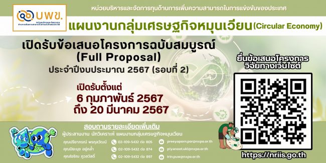บพข. ประกาศรับข้อเสนอโครงการวิจัยฉบับสมบูรณ์ (Full proposal) ปี 2567