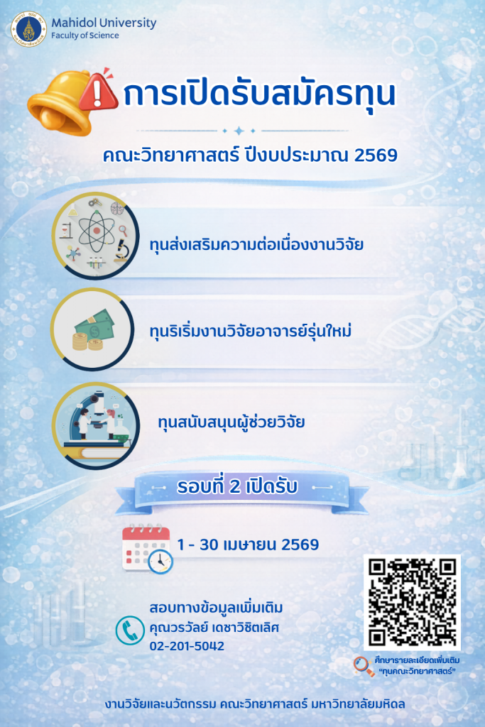 การเปิดรับสมัครทุนคณะวิทยาศาสตร์ ปีงบประมาณ 2569 รอบที่ 2