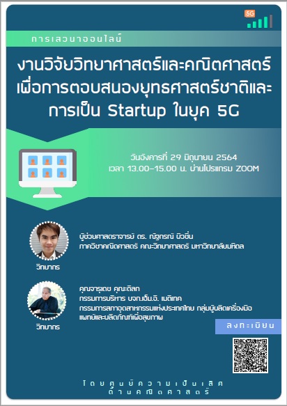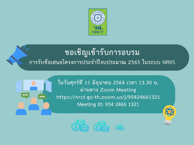 📅 วันอังคารที่ 29 มิถุนายน 2564 เวลา 13.00 – 15.00 น. ผ่านโปรแกรม Zoom