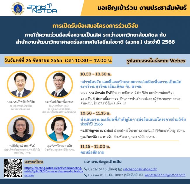 🗓ในวันจันทร์ที่ 26 กันยายน 2565 เวลา 10.30 -12.00 น. รูปแบบออนไลน์ Webex