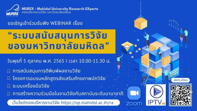 🗓วันที่ 4 ตุลาคม 2565 เวลา 14.00 – 15.00 น. ผ่านระบบออนไลน์ Zoom Meeting