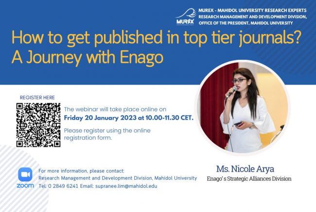 ขอเชิญเข้าร่วมรับฟัง Webinar “How to Get Published in Top Tier Journals ?