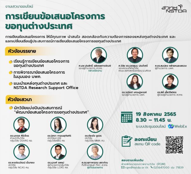 ขอเชิญเข้าร่วมงานเสวนา “การเขียนข้อเสนอโครงการขอทุนต่างประเทศ”