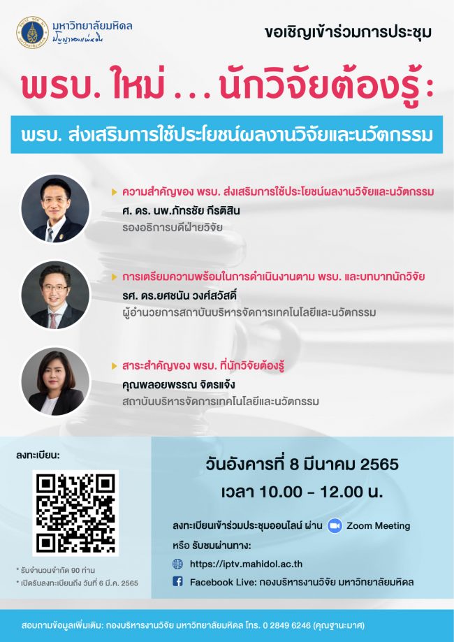 🗓วันที่ 28 เมษายน 2565 เวลา 09.00-12.00 น. ผ่านทาง ZOOM และ Facebook live